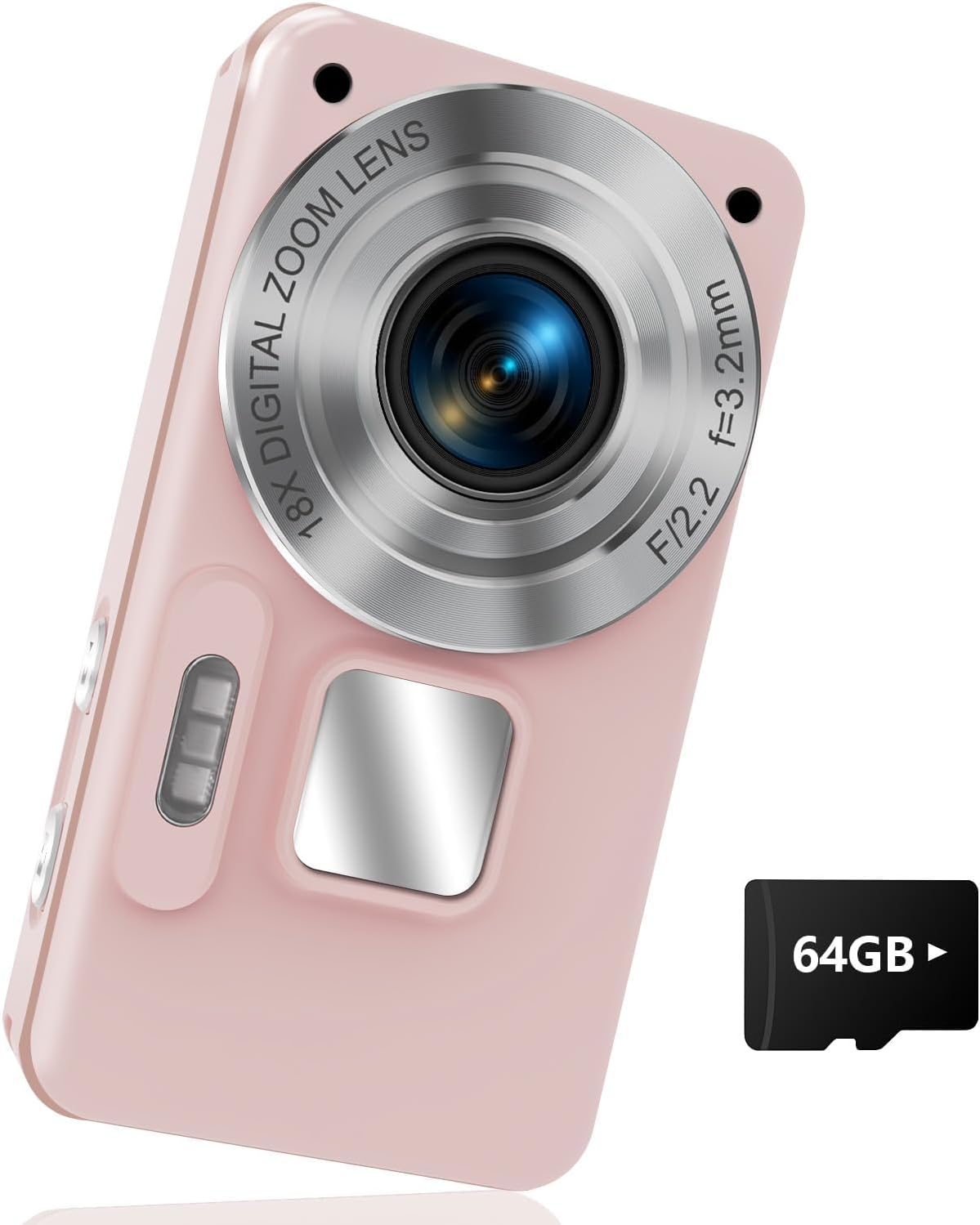 Digital Camera Kids UHD 4K Photography: 64MP Point and Shoot Cameras for Vlogging with 64GB Card 18X Zoom- Compact Small Vintage Camera for Boys Girls Teens Beginners, Portable Pocket Cameras