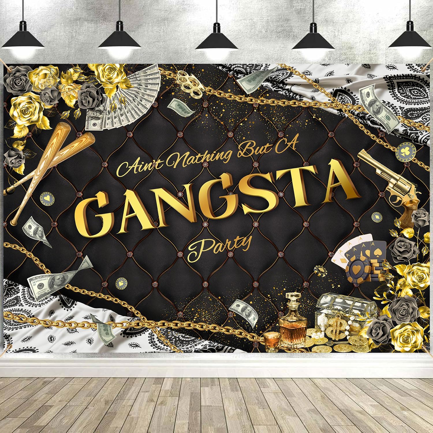 Gangsta Party Backdrop Black Gold Hiphop Theme Gangster Photography Background Aint Nothing But A Gangsta Hip Hop Gangsta Themed Party Decoration Banner Photo Booth Studio Props 7x5ft FU02YL