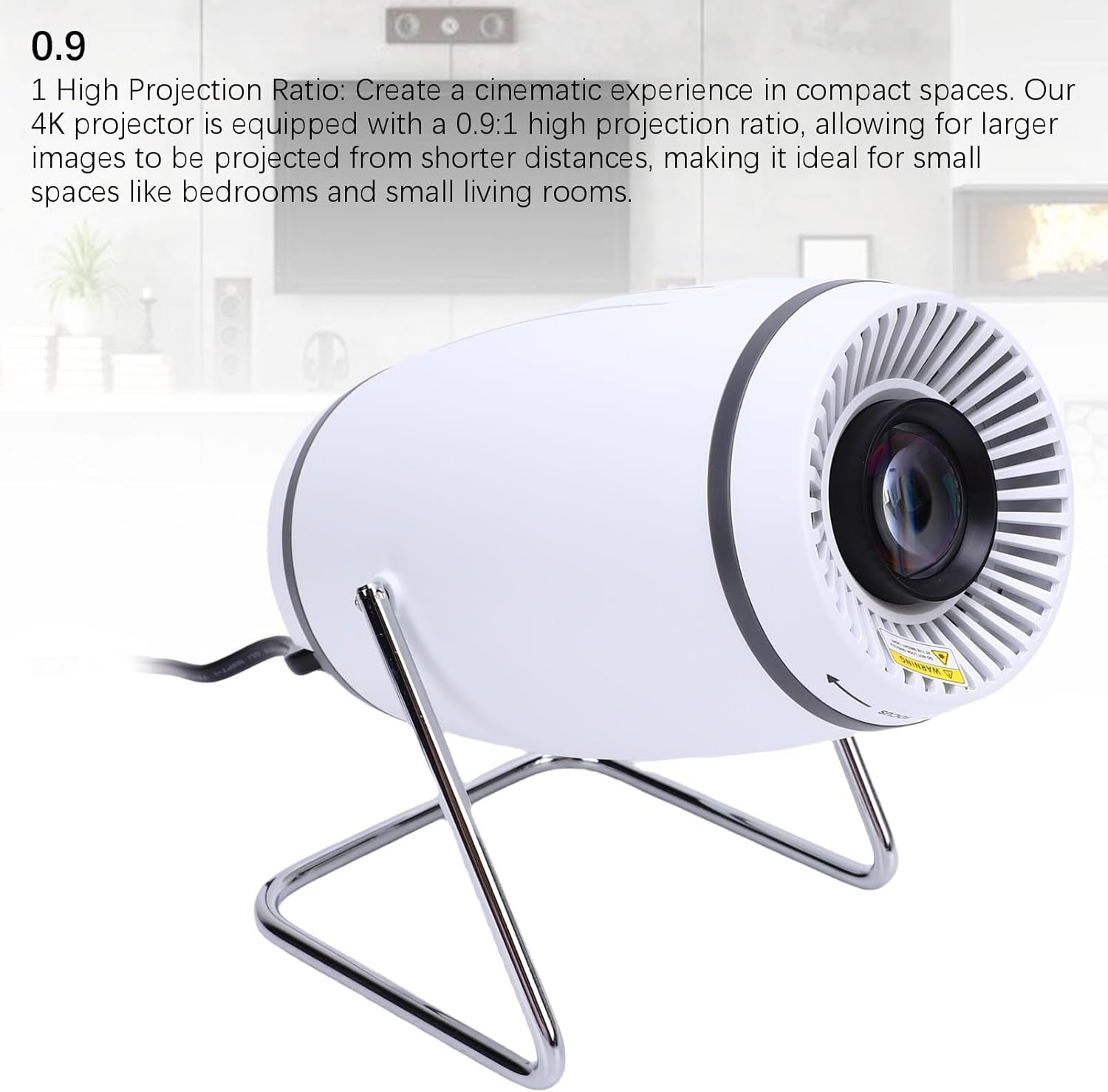 0.9:1 High Projection Ratio: Create a cinematic experience in compact spaces. Our 4K projector is equipped with a 0.9:1 high projection ratio, allowing for larger images to be projected from shorter distances, making it ideal for small spaces like bedrooms and small living rooms.