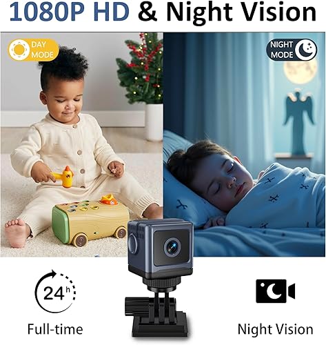 【Free 64G】 Smallest Wireless WiFi Battery Camera,Mini Spy Camera Detector with HD4K Video Recording Live Feed,Baby Monitor,Upgrade Night Vision,Motion Detection,Remote Viewing for Outdoor/Indoor