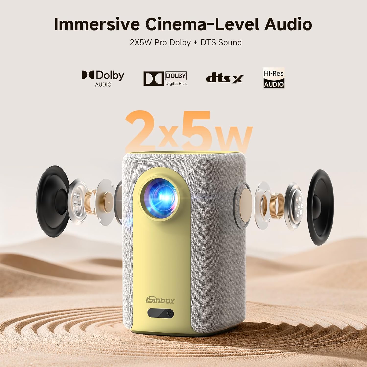 • [Dual-Mode Design: Stand and Handle in One] The iSinbox outdoor projector boasts an innovative dual-mode design, combining an integrated 360° stand with an ergonomic handle. Whether you're watching movies at home or taking the projector on the go, this smart design adapts to your lifestyle. This projector rotates from wall to ceiling projection in seconds. It also features universal M4 screw holes for tripod or tabletop placement, allowing for easy adjustment of projection angle without tools. It's perfect for a bedroom, home theater, or outdoor movie night.