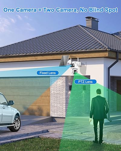 【Dual Lens & Double Security】The outdoor camera wireless designed with dual lens for full coverage to avoid blind spot. The bullet camera is fixed in one position to provide wide angle surveillance. The dome camera rotates 355° horizontally and 90° vertically to eliminate blind spots. One camera but function as 2 to guard your home.