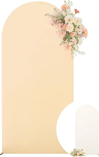 6.6FT Wedding Arch Backdrop Cover, Stretchy Arch Covers Round Top Chiara Backdrop Cover for Wedding Birthday Party Baby Shower Banquet Arch Decor(White+Beige)(White+Silver,6.6ft)