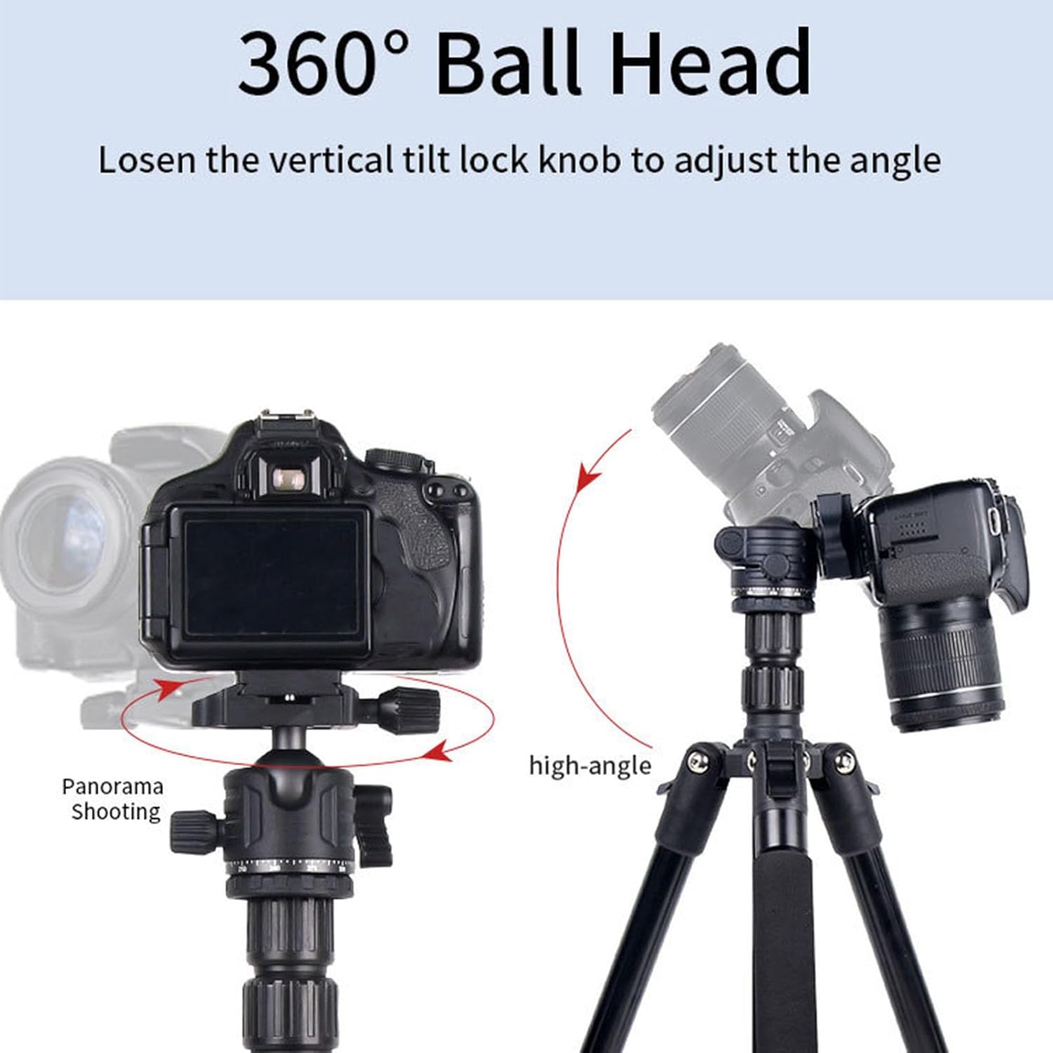 Adjustable Height, Ball Head: The specially designed ball head can rotate 360 degrees and supports up to 4kg. Camera tripod allows easy adjustment to your desired angle while maintaining stability.