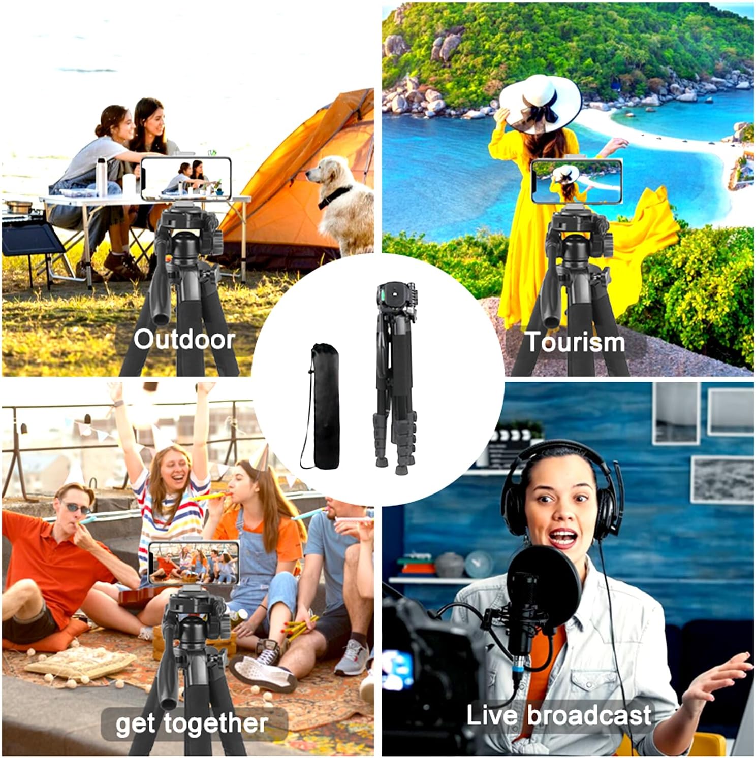 Professional Camera Tripod : The tripod features a "foldable 4-section travel seat design that allows you to adjust the tripod to 81 inches in seconds." This lightweight, portable tripod folds down and is perfect for storing in a backpack or suitcase
