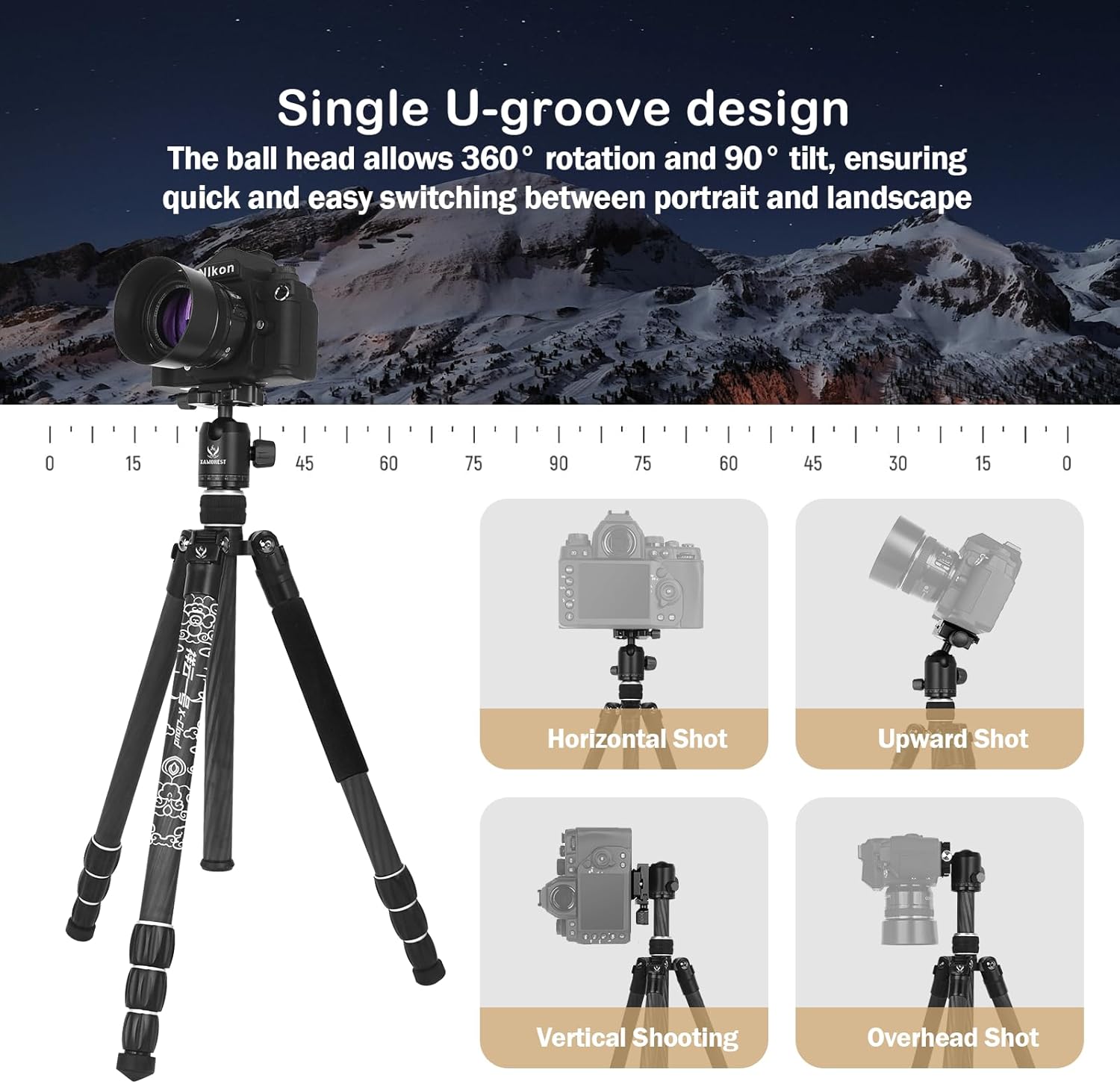 【High-quality tripod】Our carbon fiber tripod is made of aviation-grade aluminum alloy, with a maximum load-bearing capacity of 17.63lb/8kg. It breaks through the technical limitations of traditional old tripods, making the structure of the tripod more stable and harder, improving its corrosion resistance and wear resistance, adapting to a variety of field environments, and easily mastering outdoor photography.