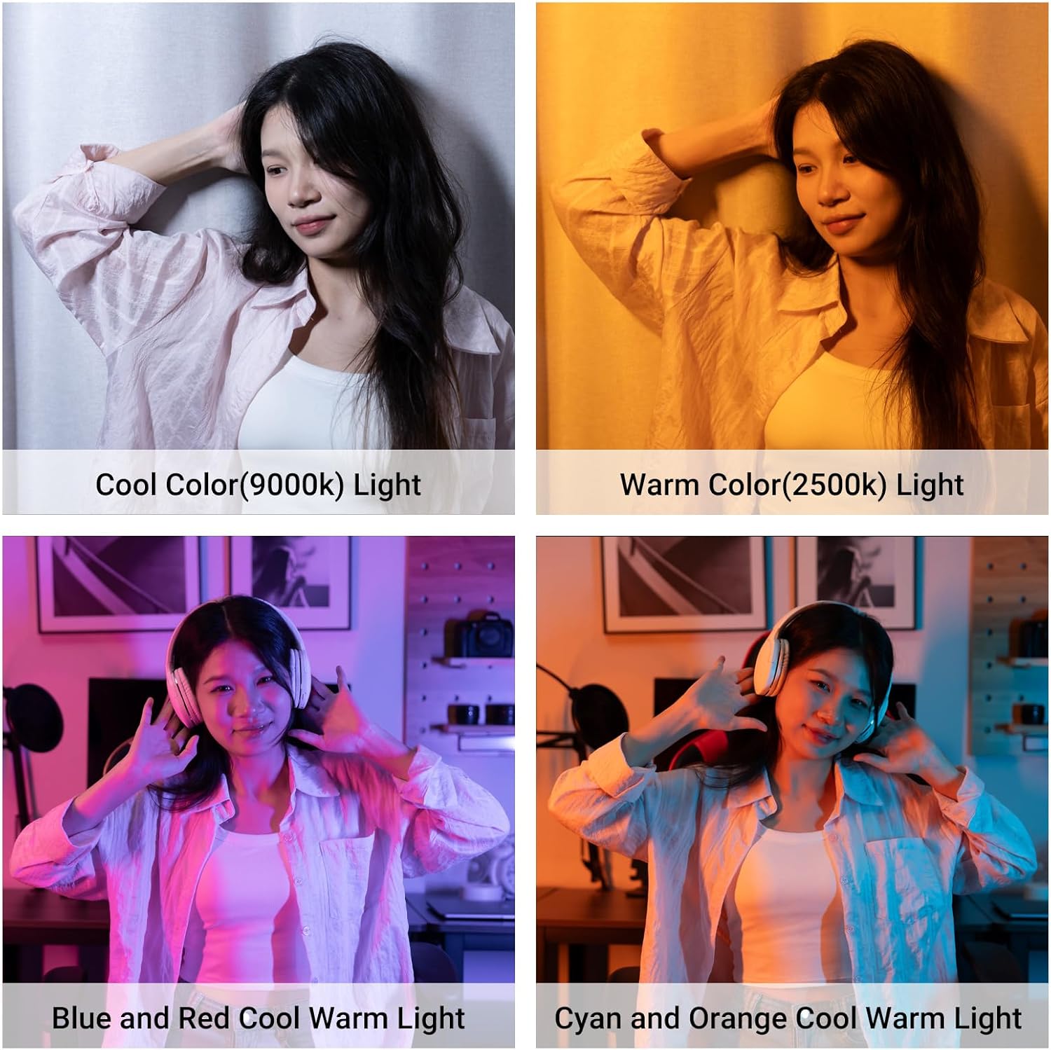 【RGB LED Video Light】:The RGB led video light adopts 63 high color rendering led beads,comes with a professional full-colour panel display featuring 360 colours,CRI 95+ colour temperatures from 2500K to 8500K,0-100% brightness adjustments and support timer mode.