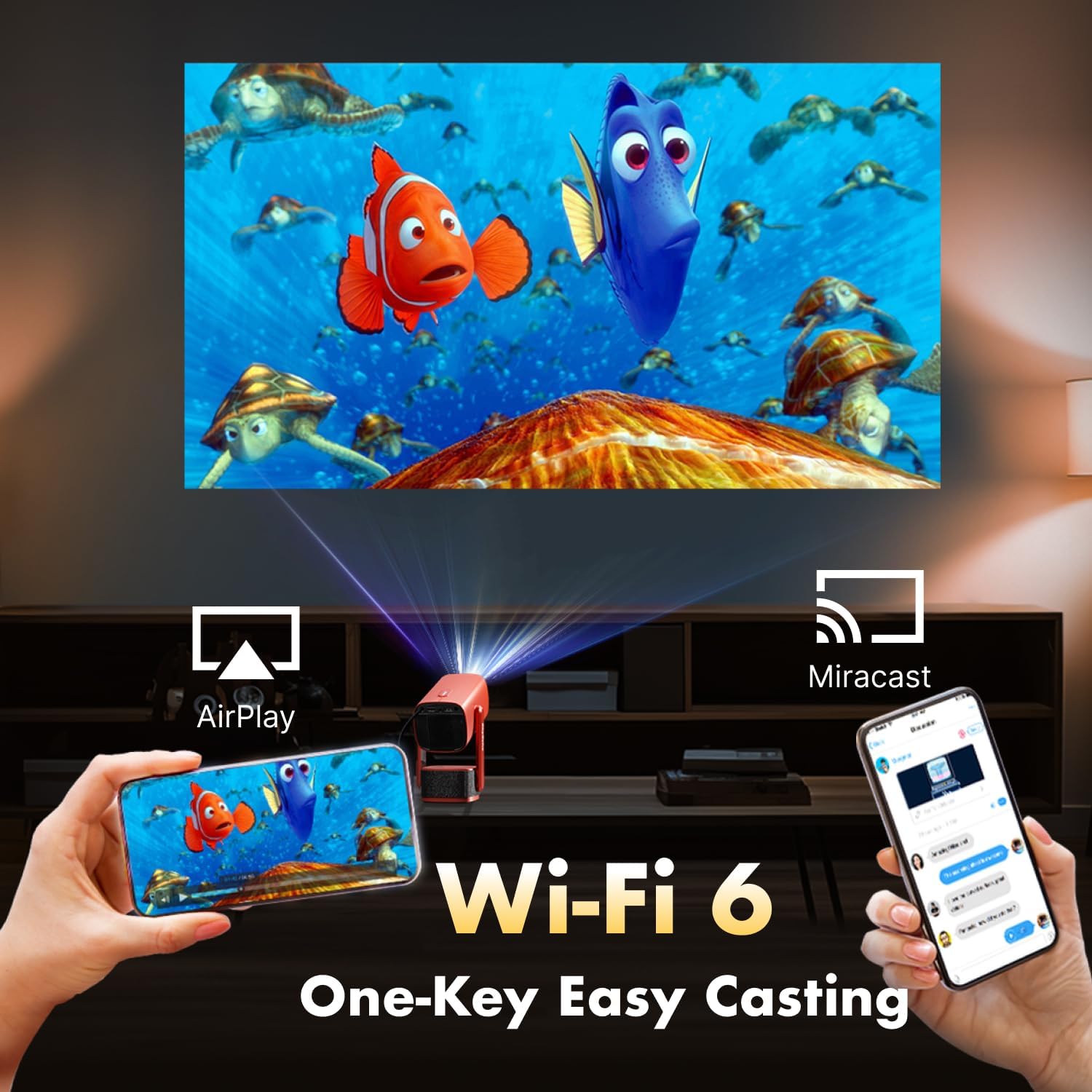 Mini Projector with WIFI and Bluetooth, Built-in Stand & 270° Tilt, 3ft Short Throw for 150" Display, 4K Supported & 350 ANSI, for Home Outdoor Ceiling and Floor Movie Watching