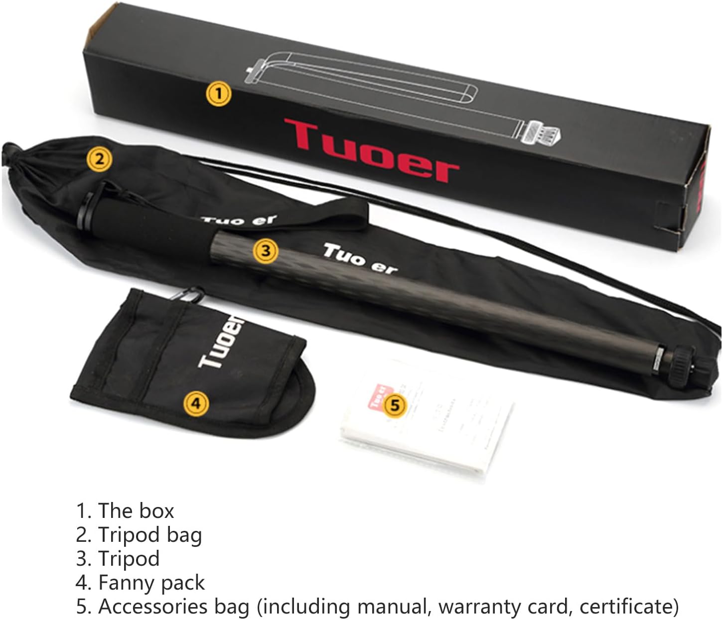 60 Inch Compact Camera Travel Monopod Tripod 360 Degree Swivel Ball Head 1/4 Quick Release Plate Carry Bag 5 Section Height Adjustable
