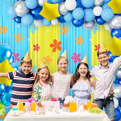 Cartoon Sponge Theme Design: our sponge theme birthday decorations feature bright colors like blue and yellow, along with ocean elements like jellyfish, seaweed, and bubbles; They create a fun underwater look; The exquisite fringe curtains add a special touch to ocean themed parties and are ideal for sponge themed birthday celebrations