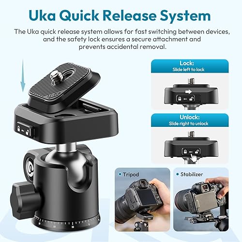 【360° Panoramic Ball Head】 The vlogging tripod stand equipment rotates its metal ball head 360° and tilts 90°; the 1/4" quick release plate is compatible with Sony Canon Nikon cameras and camcorders as influencer must have photography accessories and gear