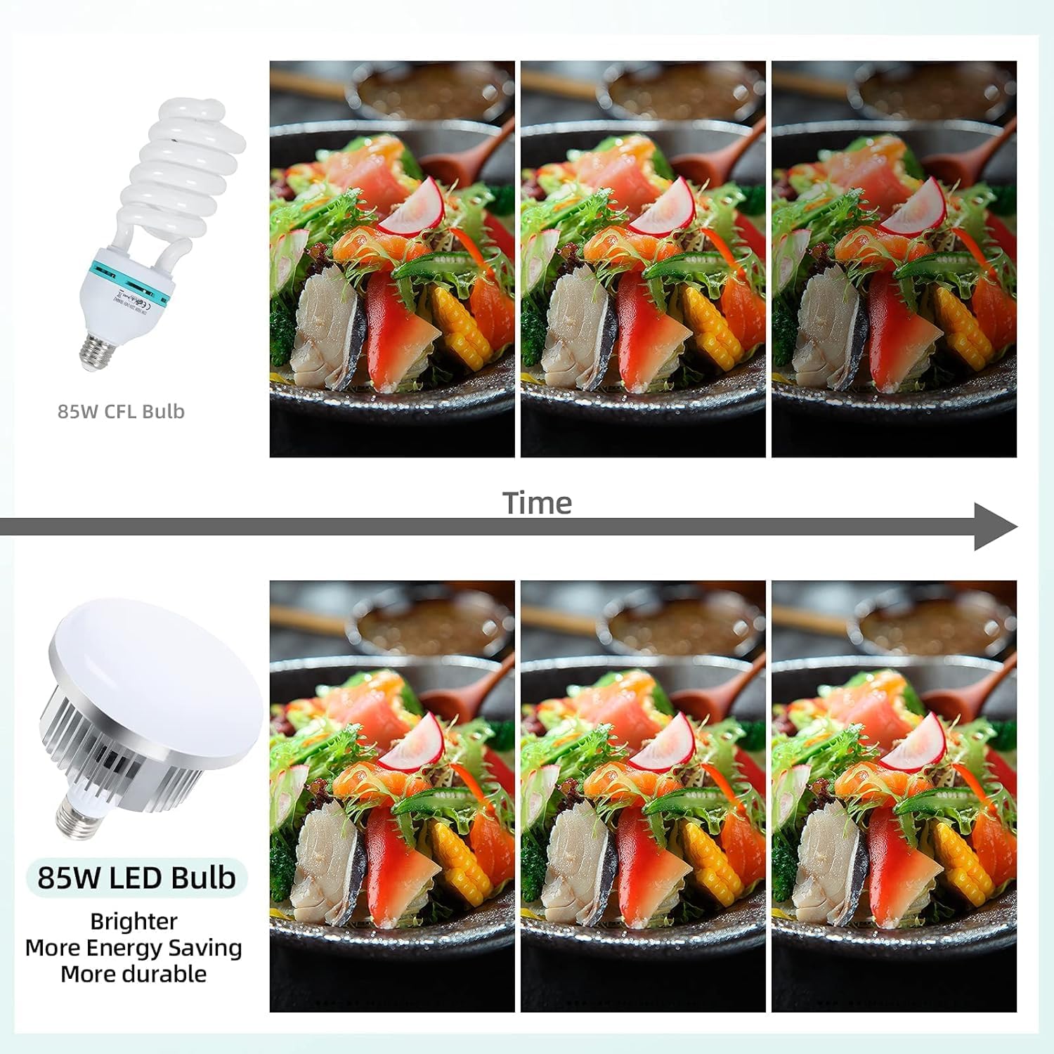 ❤【80% ENERGY SAVING BULBS】:2 x 85W CFL bulbs, with a standard E27 socket, the total output is equivalent to 800W ordinary incandescent bulb, low operating temperature, service life of about 8000 hours. 5500k color temperature. You can feel the daylight even in a dim environment, providing a good photographic environment.