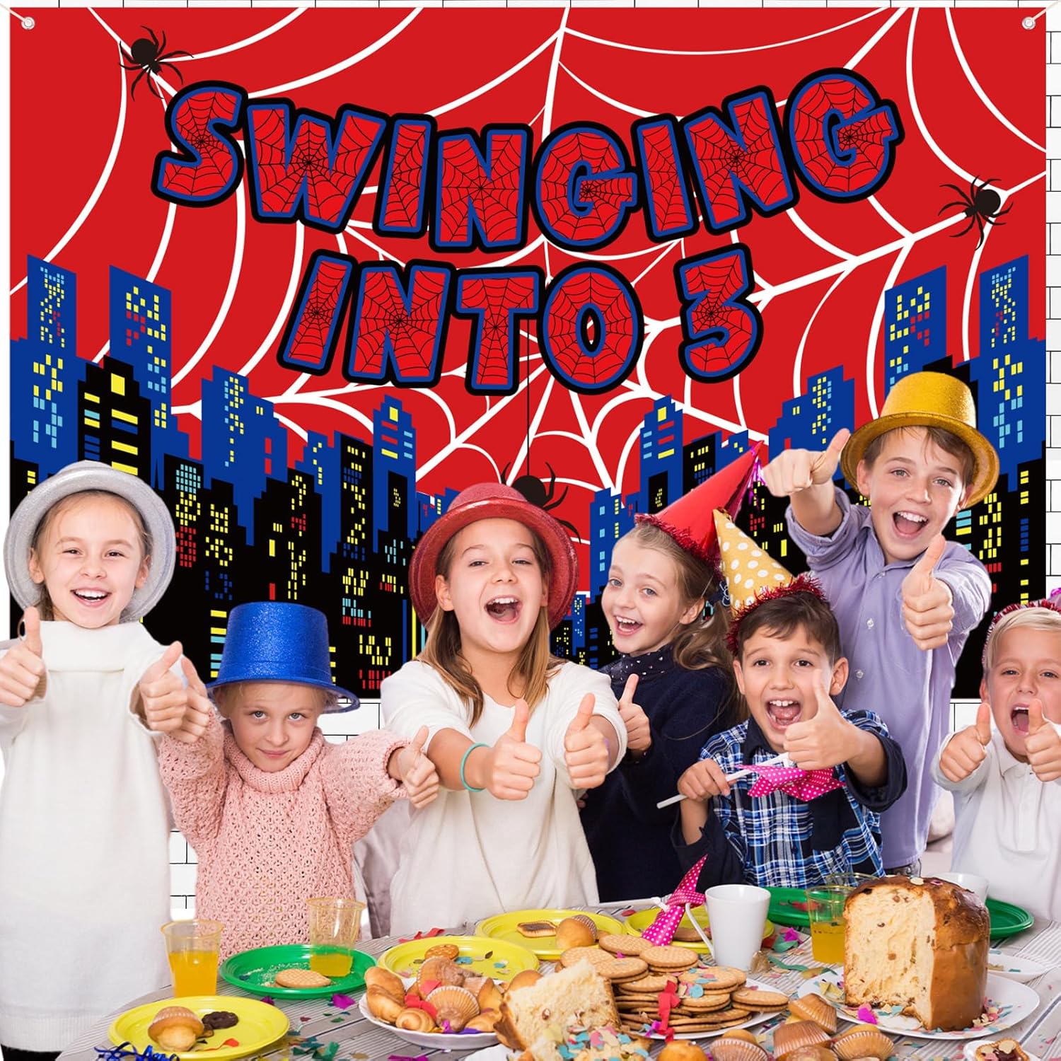 Spider Web Backdrop, 180x120cm/5.91x3.94ft 3 Years Old Red Spider Theme Birthday Decoration for Boys Girls Photo Prop