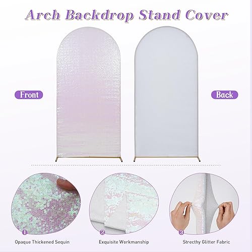 Easy To Install-Round Top Chiara Arch Backdrop: The arch backdrop cover is easy to install and remove. Simply stretch it to slide over the arch frame and adjust as needed.Easy to carry and quickly decorate party backdrops.The sequin fabric makes the whole arch cover more dazzling and gives a elegance stunning visual effect.